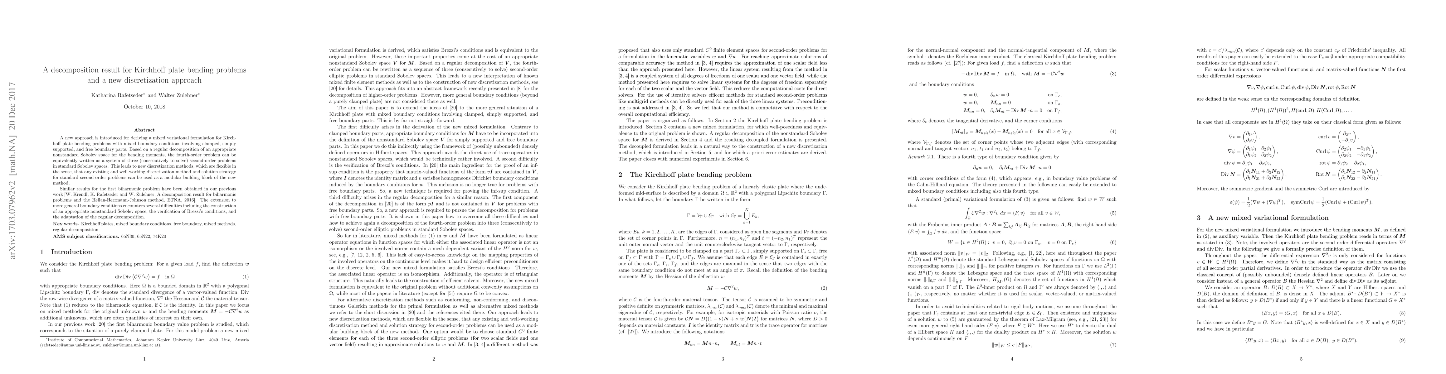 Researchers develop a new approach to solve Kirchhoff plate bending problems with mixed boundary conditions, breaking down the problem into three second-order equations that can be solved using existing methods.