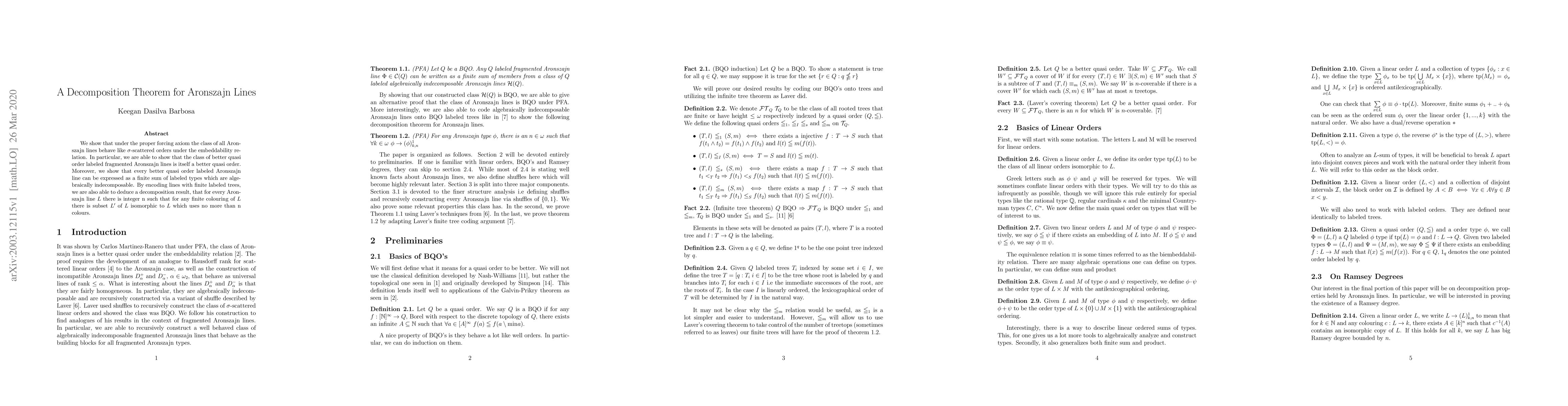 We show that under the proper forcing axiom the class of all Aronszajn lines behave like $\sigma$-scattered orders under the embeddability relation. In particular, we are able to show that the class of better quasi order labeled fragmented Aronszajn lines is itself a better quasi order. Moreover, we show that every better quasi order labeled Aronszajn line can be expressed as a finite sum of labeled types which are algebraically indecomposable. By encoding lines with finite labeled trees, we are also able to deduce a decomposition result, that for every Aronszajn line $L$ there is integer n such that for any finite colouring of $L$ there is subset $L^\prime$ of $L$ isomorphic to $L$ which uses no more than n colours.