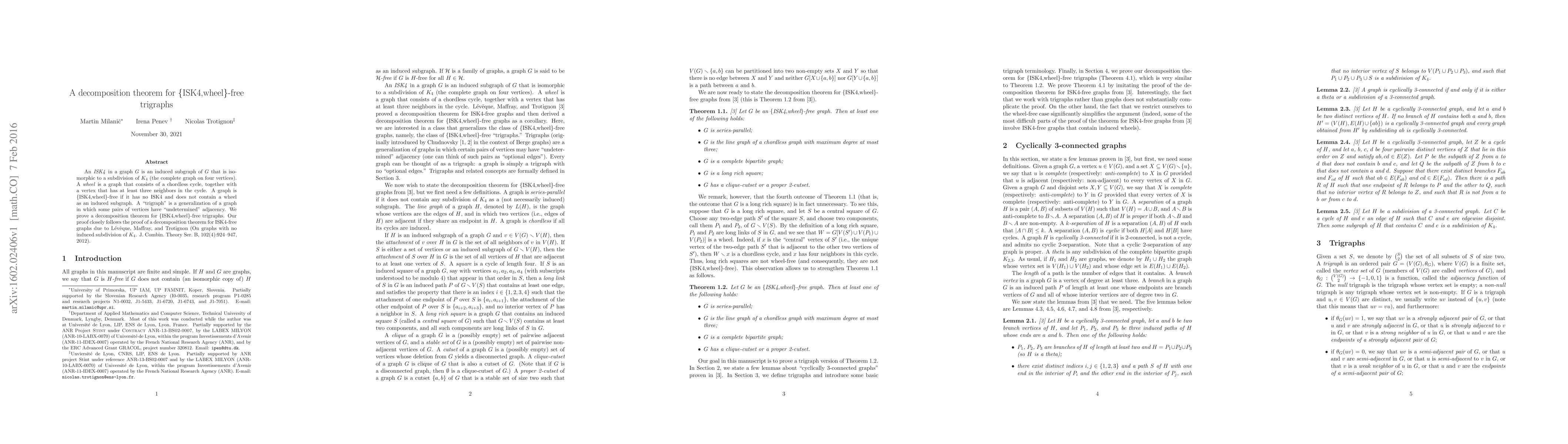 Nicolas Trotignon, Martin Milanič, Irena Penev