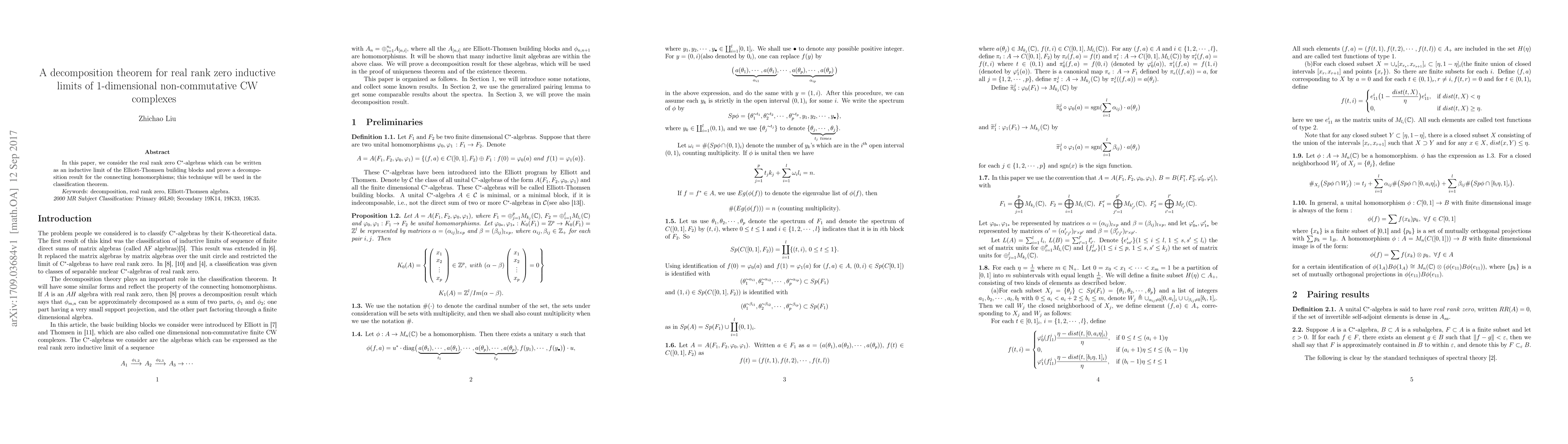 In this paper, we consider the real rank zero $\mathrm{C}^*$-algebras which can be written as an inductive limit of the Elliott-Thomsen building blocks and prove a decomposition result for the connecting homomorphisms; this technique will be used in the classification theorem.