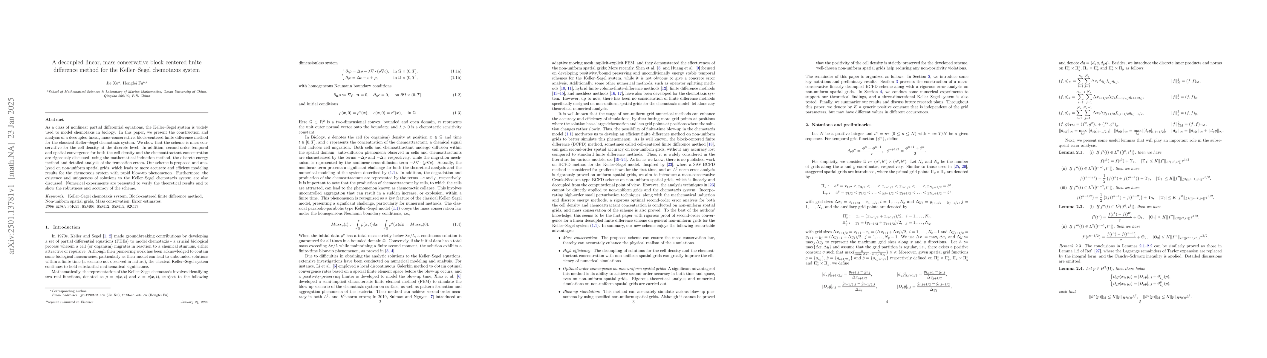 This paper introduces a new decoupled, linear, mass-conservative, block-centered finite difference method for the Keller-Segel chemotaxis system, demonstrating mass conservation and second-order convergence on non-uniform grids, and presenting numerical results to validate the theoretical findings.