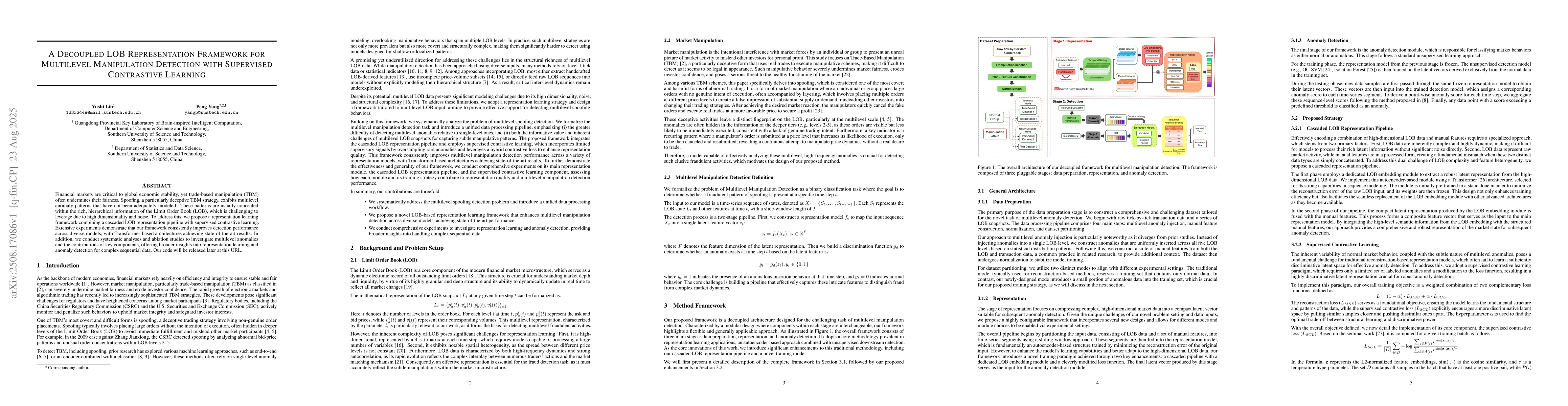 Financial markets are critical to global economic stability, yet trade-based manipulation (TBM) often undermines their fairness. Spoofing, a particularly deceptive TBM strategy, exhibits multilevel anomaly patterns that have not been adequately modeled. These patterns are usually concealed within the rich, hierarchical information of the Limit Order Book (LOB), which is challenging to leverage due to high dimensionality and noise. To address this, we propose a representation learning framework combining a cascaded LOB representation pipeline with supervised contrastive learning. Extensive experiments demonstrate that our framework consistently improves detection performance across diverse models, with Transformer-based architectures achieving state-of-the-art results. In addition, we conduct systematic analyses and ablation studies to investigate multilevel anomalies and the contributions of key components, offering broader insights into representation learning and anomaly detection for complex sequential data. Our code will be released later at this URL.