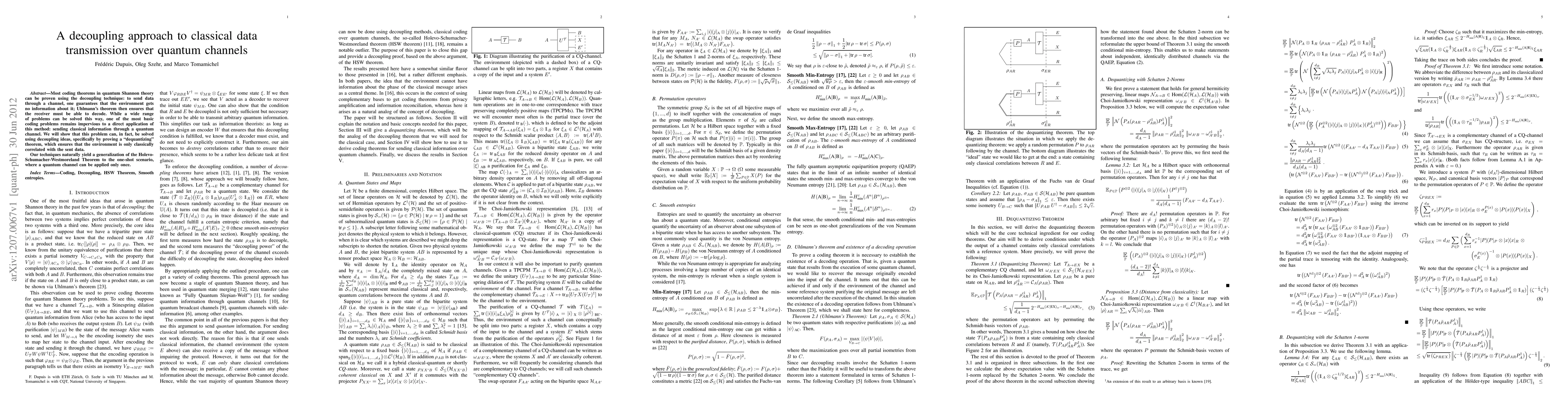 Most coding theorems in quantum Shannon theory can be proven using the decoupling technique: to send data through a channel, one guarantees that the environment gets no information about it; Uhlmann's theorem then ensures that the receiver must be able to decode. While a wide range of problems can be solved this way, one of the most basic coding problems remains impervious to a direct application of this method: sending classical information through a quantum channel. We will show that this problem can, in fact, be solved using decoupling ideas, specifically by proving a "dequantizing" theorem, which ensures that the environment is only classically correlated with the sent data. Our techniques naturally yield a generalization of the Holevo-Schumacher-Westmoreland Theorem to the one-shot scenario, where a quantum channel can be applied only once.