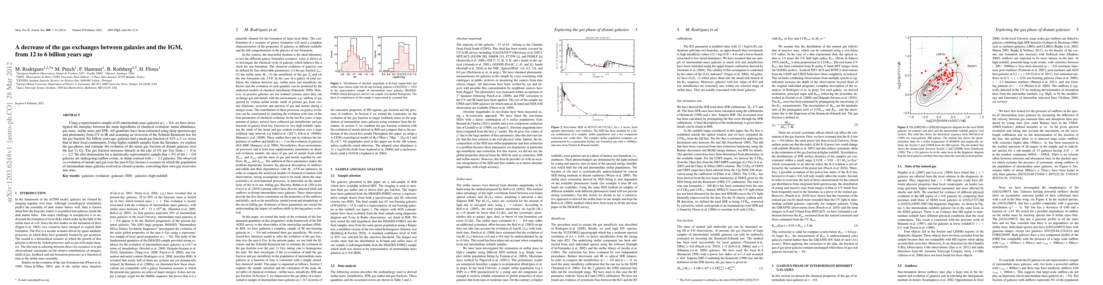 This paper investigates the evolution of gas exchanges between intermediate mass galaxies and the intergalactic medium (IGM) over the last 12 to 6 billion years, finding that galaxies had twice the gas fraction of their present-day counterparts. It concludes that most galaxies evolved as closed systems, converting their gas into stars without significant outflows.
