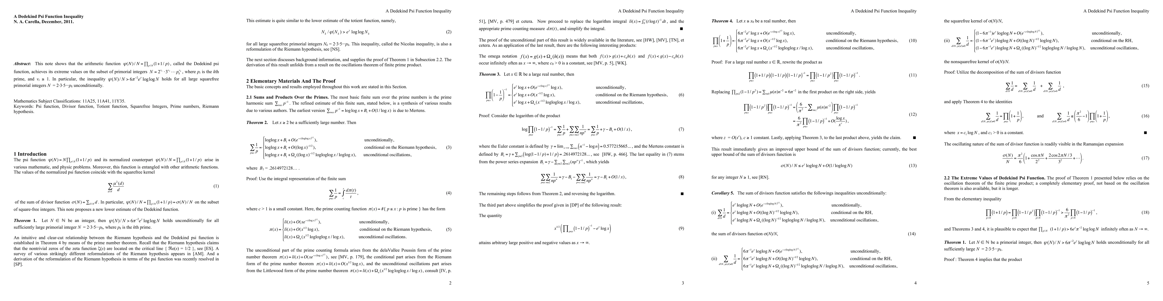 This note shows that the Dedekind psi function achieves its extreme values on the subset of primorial integers N_k = 2*3*5*...*p_k, where p_k is the kth prime. In particular, the inequality psi(N_k) > cloglog N_k, where c = 1.08... is a universal constant, holds for all large primorial integers N_k = 2*3*5*...*p_k unconditionally.