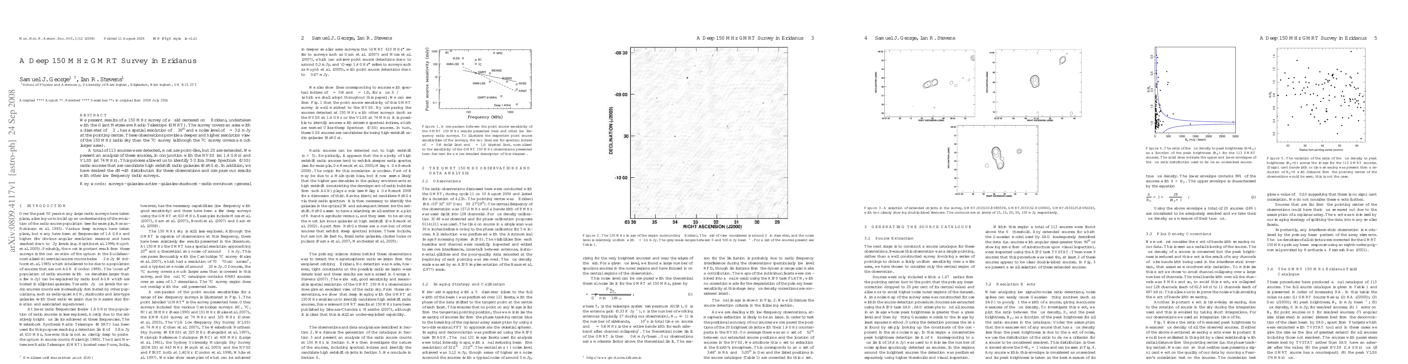 We present results of a 150 MHz survey of a field centered on Epsilon Eridani, undertaken with the Giant Metrewave Radio Telescope (GMRT). The survey covers an area with a diameter of 2 deg, has a spatial resolution of 30" and a noise level of 3.1 mJy at the pointing centre. These observations provide a deeper and higher resolution view of the 150 MHz radio sky than the 7C survey (although the 7C survey covers a much larger area). A total of 113 sources were detected, most are point-like, but 20 are extended. We present an analysis of these sources, in conjunction with the NVSS (at 1.4 GHz) and VLSS (at 74 MHz). This process allowed us to identify 5 Ultra Steep Spectrum (USS) radio sources that are candidate high redshift radio galaxies (HzRGs). In addition, we have derived the dN/dS distribution for these observations and compare our results with other low frequency radio surveys.