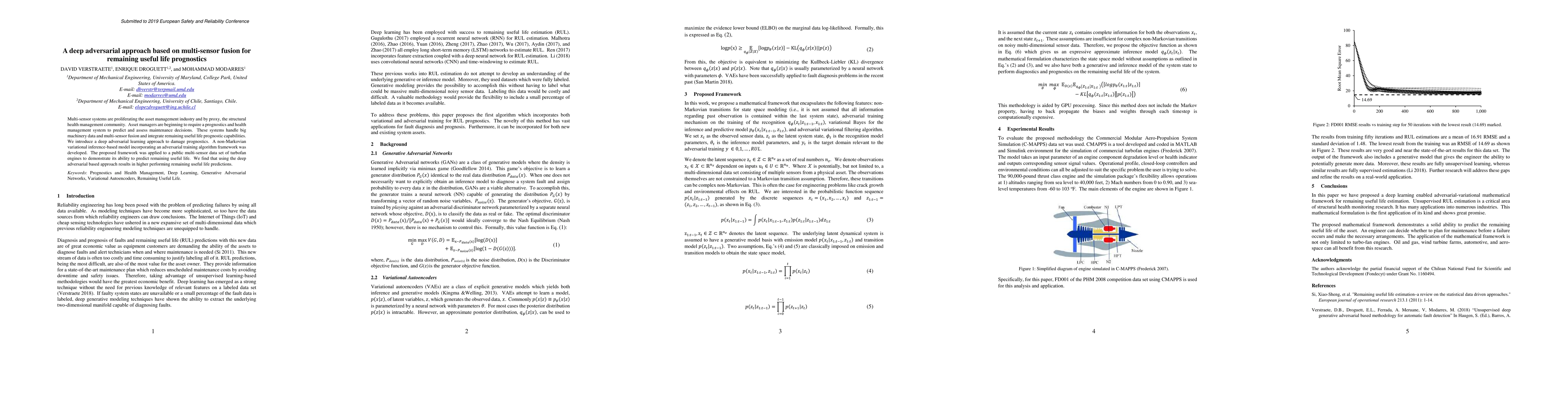 Multi-sensor systems are proliferating the asset management industry and by proxy, the structural health management community. Asset managers are beginning to require a prognostics and health management system to predict and assess maintenance decisions. These systems handle big machinery data and multi-sensor fusion and integrate remaining useful life prognostic capabilities. We introduce a deep adversarial learning approach to damage prognostics. A non-Markovian variational inference-based model incorporating an adversarial training algorithm framework was developed. The proposed framework was applied to a public multi-sensor data set of turbofan engines to demonstrate its ability to predict remaining useful life. We find that using the deep adversarial based approach results in higher performing remaining useful life predictions.