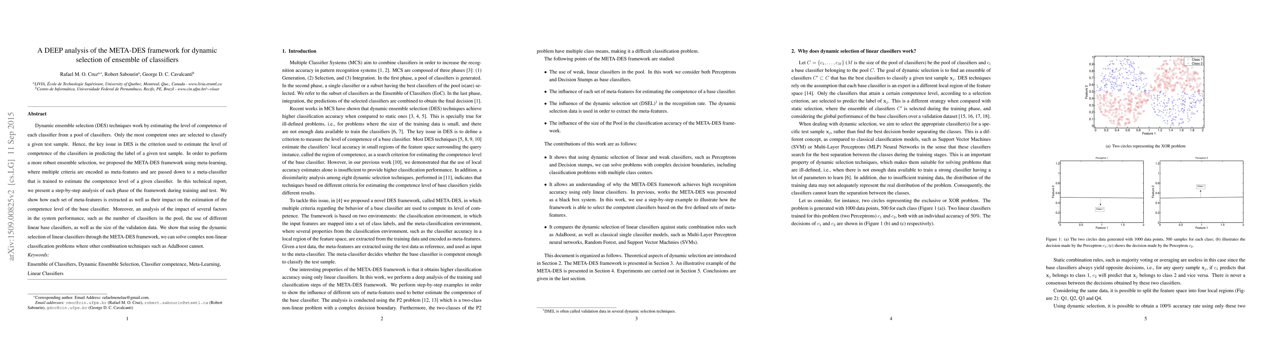 This paper presents a detailed analysis of the META-DES framework for dynamic ensemble selection, employing meta-learning to estimate classifier competence. The study evaluates the impact of various factors on system performance and demonstrates its effectiveness in solving complex non-linear classification problems.