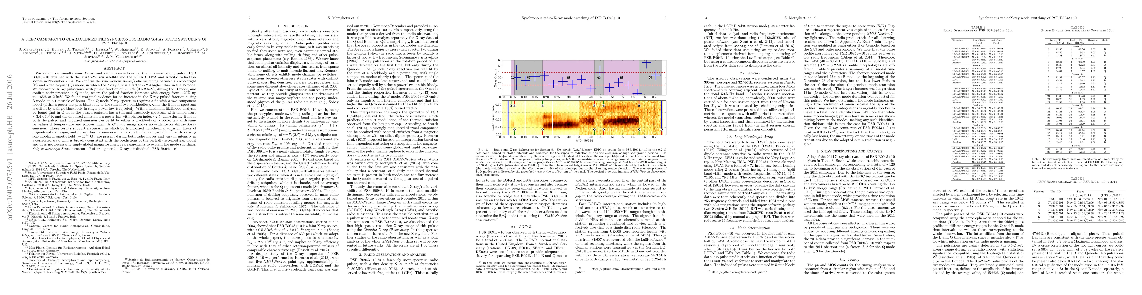 A combination of XMM-Newton Large Program with simultaneous LOFAR, LWA, and Arecibo radio monitoring was used to study the X-ray emission of PSRB 0943+10.