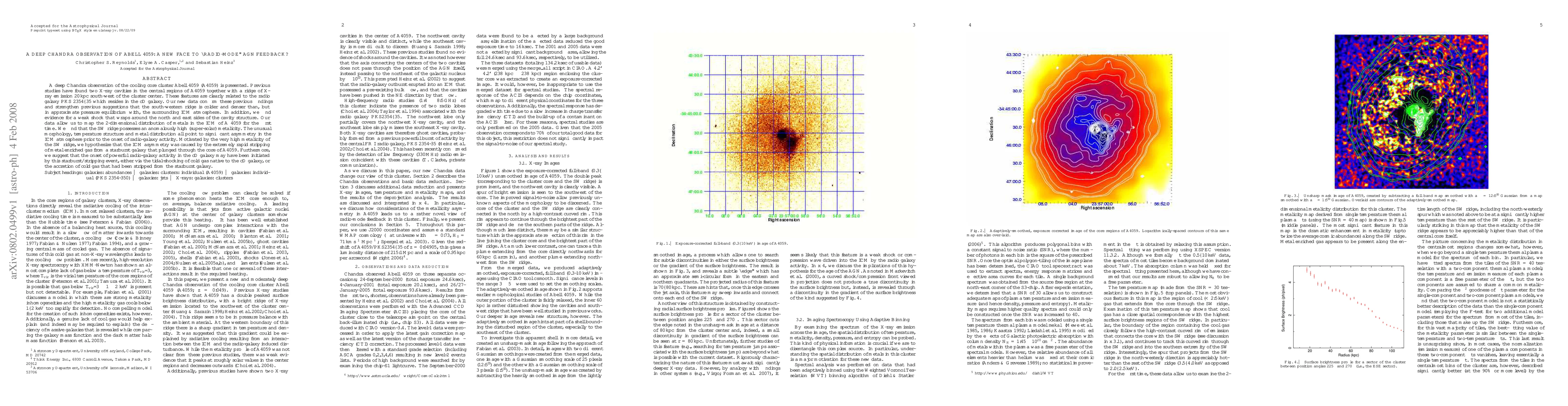 A deep Chandra observation of the cooling core cluster Abell 4059 (A4059) is presented. Previous studies have found two X-ray cavities in the central regions of A4059 together with a ridge of X-ray emission 20kpc south-west of the cluster center. These features are clearly related to the radio galaxy PKS2354-35 which resides in the cD galaxy. Our new data confirm these previous findings and strengthen previous suggestions that the south-western ridge is colder and denser than, but in approximate pressure equilibrium with, the surrounding ICM atmosphere. In addition, we find evidence for a weak shock that wraps around the north and east sides of the cavity structure. Our data allow us to map the 2-dimensional distribution of metals in the ICM of A4059 for the first time. We find that the SW ridge possesses an anomalously high (super-solar) metalicity. The unusual morphology, temperature structure and metal distribution all point to significant asymmetry in the ICM atmosphere prior to the onset of radio-galaxy activity. Motivated by the very high metalicity of the SW ridge, we hypothesize that the ICM asymmetry was caused by the extremely rapid stripping of metal enriched gas from a starburst galaxy that plunged through the core of A4059. Furthermore, we suggest that the onset of powerful radio-galaxy activity in the cD galaxy may have been initiated by this starburst/stripping event, either via the tidal-shocking of cold gas native to the cD galaxy, or the accretion of cold gas that had been stripped from the starburst galaxy.