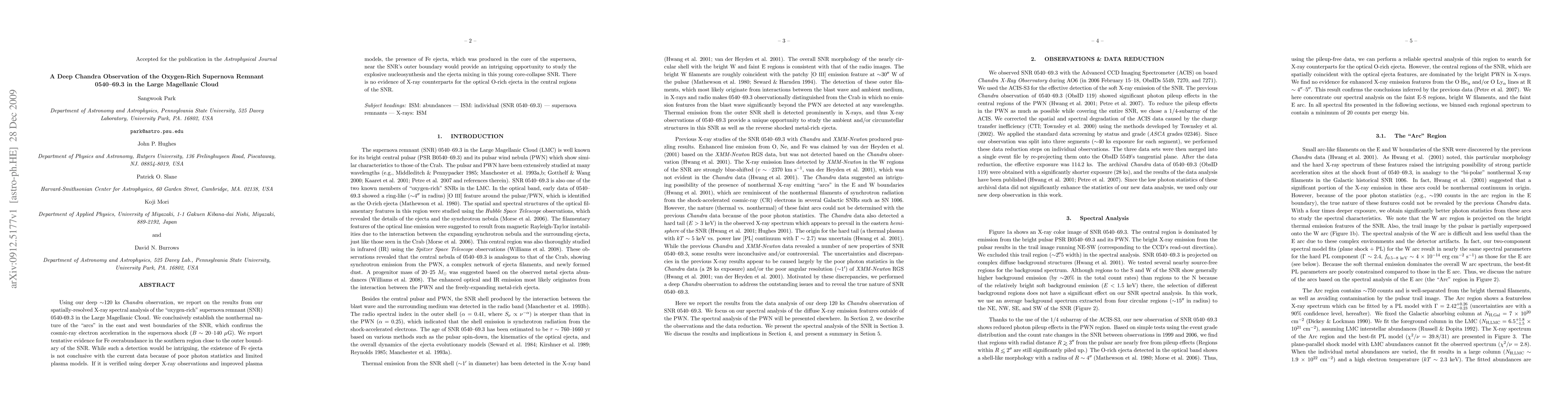 The research utilized deep Chandra X-ray observations (~120 ks) to perform spatially-resolved X-ray spectral analysis of the oxygen-rich supernova remnant (SNR) 0540-69.3 in the Large Magellanic Cloud.
