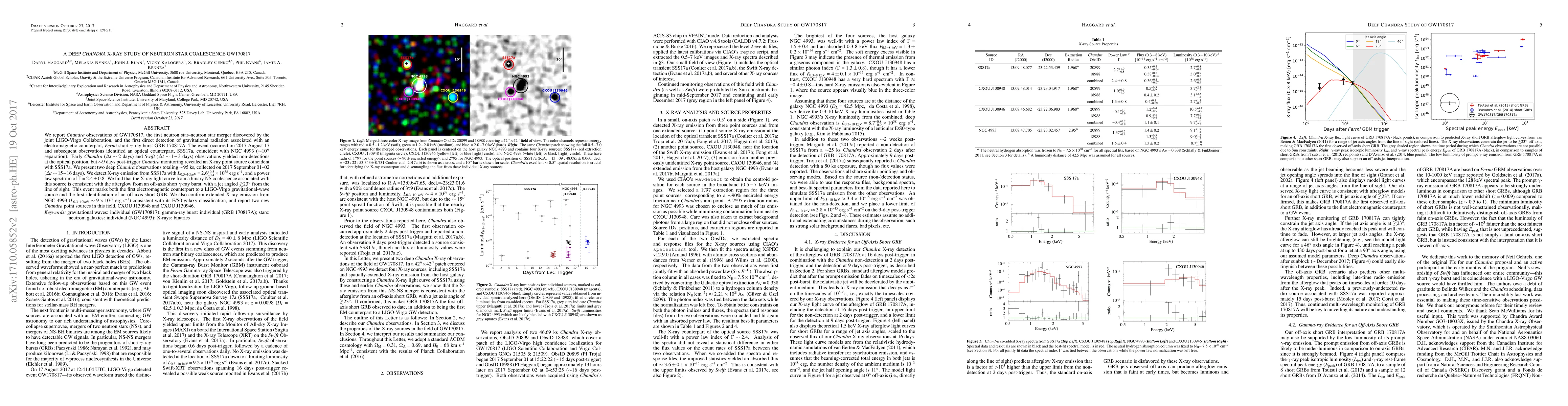 We report Chandra observations of GW170817, the first neutron star-neutron star merger discovered by the joint LIGO-Virgo Collaboration, and the first direct detection of gravitational radiation associated with an electromagnetic counterpart, Fermi short gamma-ray burst GRB 170817A. The event occurred on 2017 August 17 and subsequent observations identified an optical counterpart, SSS17a, coincident with NGC 4993 (~10 arcsec separation). Early Chandra (\Delta t ~ 2 days) and Swift (\Delta t ~ 1-3 days) observations yielded non-detections at the optical position, but ~9 days post-trigger Chandra monitoring revealed an X-ray point source coincident with SSS17a. We present two deep Chandra observations totaling ~95 ks, collected on 2017 September 01-02 (\Delta t ~ 15-16 days). We detect X-ray emission from SSS17a with L_{0.3-10 keV} = 2.6^{+0.5}_{-0.4} x 10^38 ergs, and a power law spectrum of Gamma = 2.4 +/- 0.8. We find that the X-ray light curve from a binary NS coalescence associated with this source is consistent with the afterglow from an off-axis short gamma-ray burst, with a jet angled >~23 deg from the line of sight. This event marks both the first electromagnetic counterpart to a LIGO-Virgo gravitational-wave source and the first identification of an off-axis short GRB. We also confirm extended X-ray emission from NGC 4993 (L_{0.3-10 keV} ~ 9 x 10^38 ergs) consistent with its E/S0 galaxy classification, and report two new Chandra point sources in this field, CXOU J130948 and CXOU J130946.