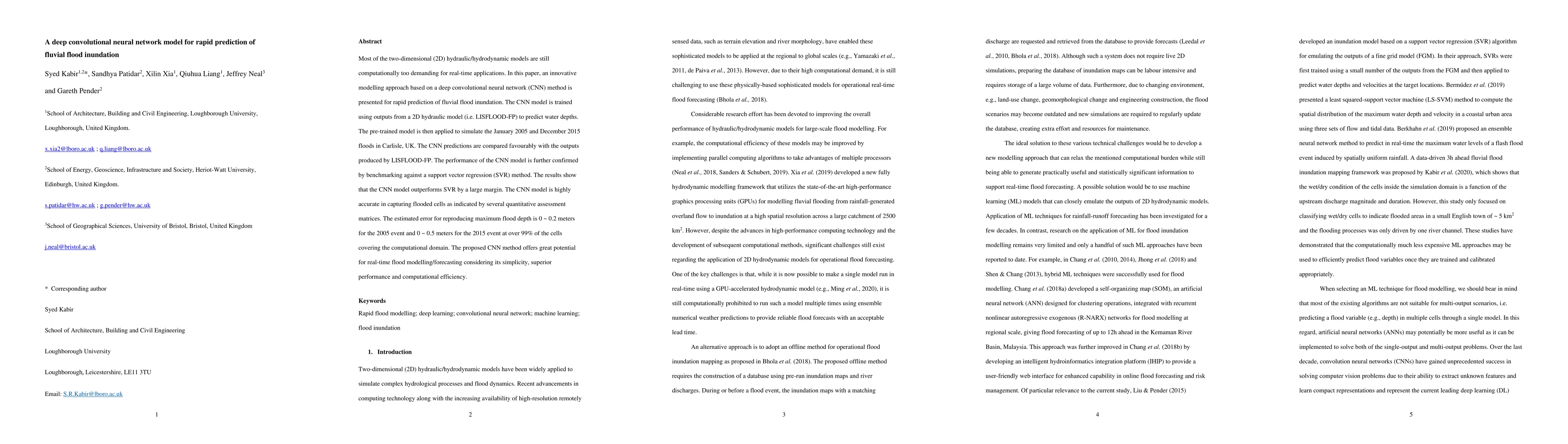 This paper introduces a deep convolutional neural network (CNN) model for rapid prediction of fluvial flood inundation, trained using 2D hydraulic model outputs. The CNN model outperforms support vector regression and shows high accuracy in predicting flood depths, offering a computationally efficient solution for real-time flood forecasting.