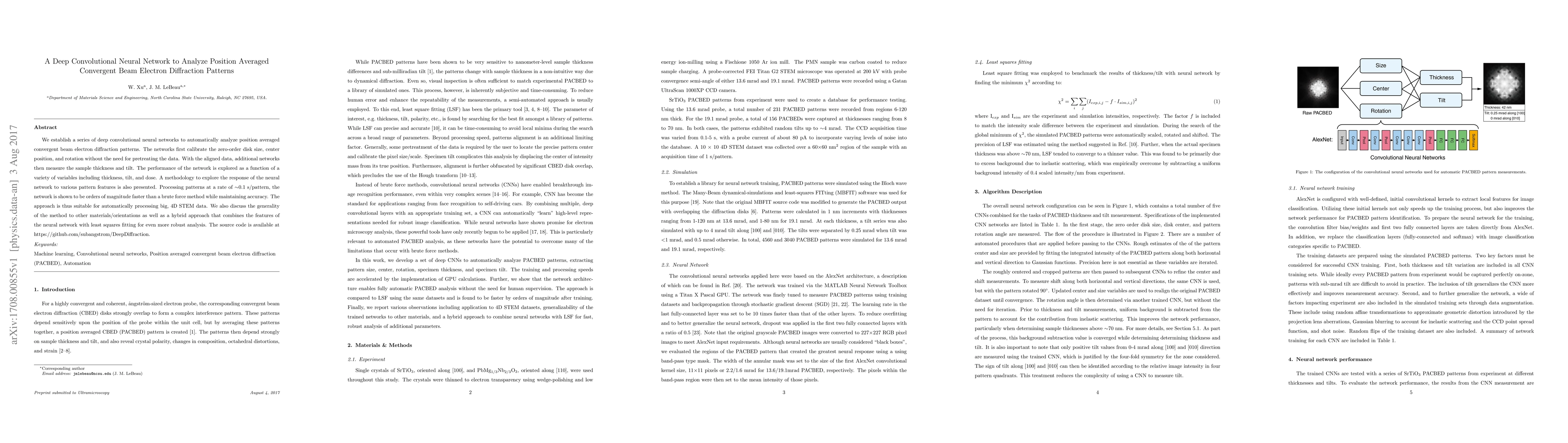 A convolutional neural network (CNN) is used to analyze zone-axis scanning transmission electron microscopy (STEM) images of crystal structures.