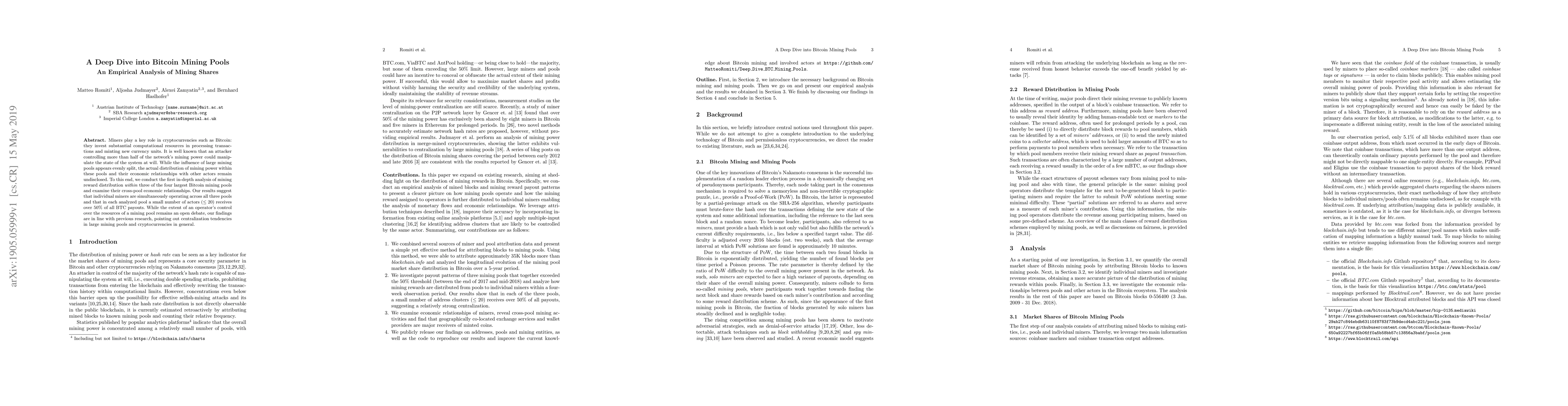 Miners play a key role in cryptocurrencies such as Bitcoin: they invest substantial computational resources in processing transactions and minting new currency units. It is well known that an attacker controlling more than half of the network's mining power could manipulate the state of the system at will. While the influence of large mining pools appears evenly split, the actual distribution of mining power within these pools and their economic relationships with other actors remain undisclosed. To this end, we conduct the first in-depth analysis of mining reward distribution within three of the four largest Bitcoin mining pools and examine their cross-pool economic relationships. Our results suggest that individual miners are simultaneously operating across all three pools and that in each analyzed pool a small number of actors (<= 20) receives over 50% of all BTC payouts. While the extent of an operator's control over the resources of a mining pool remains an open debate, our findings are in line with previous research, pointing out centralization tendencies in large mining pools and cryptocurrencies in general.