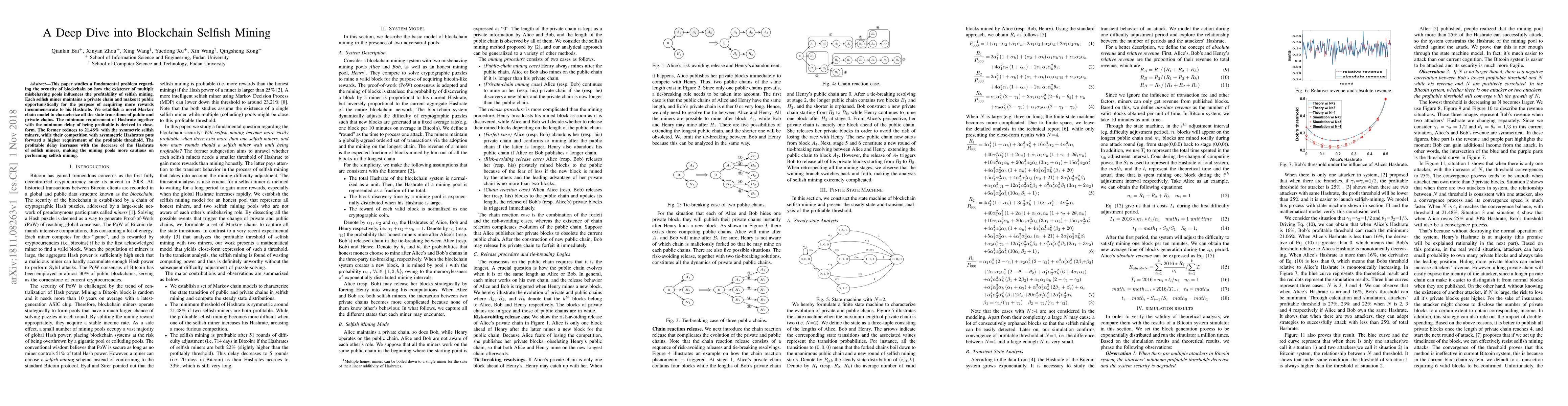 This paper investigates the security implications of blockchain selfish mining, where miners maintain private chains and opportunistically reveal them to maximize rewards. A novel Markov chain model is developed to analyze state transitions, revealing that a minimum Hashrate of 21.48% is required for profitability, with asymmetric competition raising this threshold and increasing the delay for profitable selfish mining.
