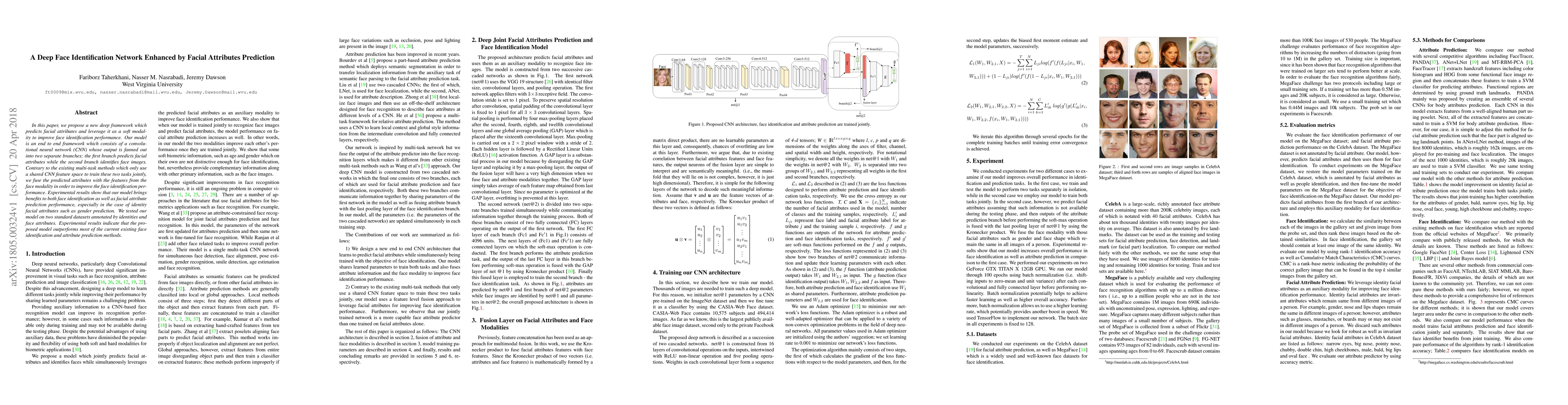 This paper introduces a deep framework that predicts facial attributes to enhance face identification performance. The model uses a convolutional neural network with two branches: one for attribute prediction and one for face identification, fusing attribute predictions to improve identification accuracy, outperforming existing methods on standard datasets.