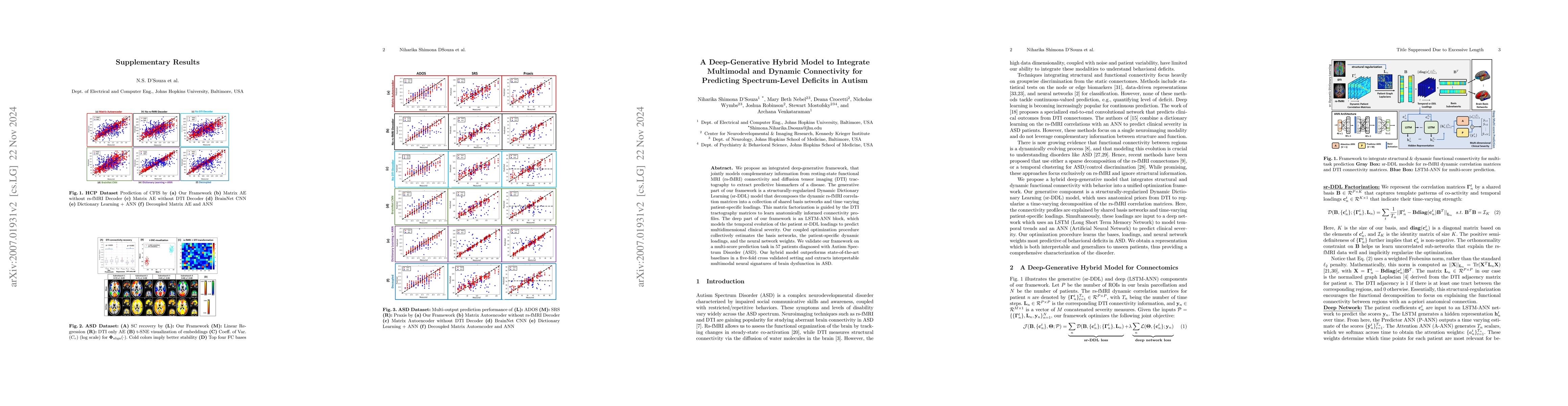This paper proposes a deep-generative hybrid model that integrates resting-state fMRI and DTI data to predict spectrum-level deficits in Autism Spectrum Disorder. The model uses a structurally-regularized Dynamic Dictionary Learning approach and an LSTM-ANN block to extract predictive biomarkers and outperforms existing methods.