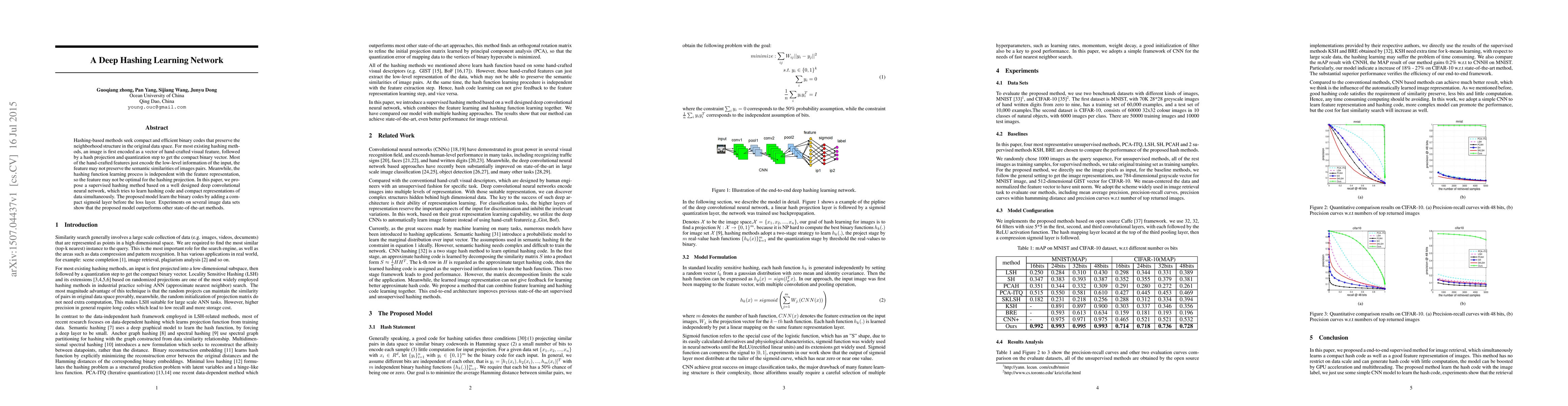 The paper proposes a supervised deep hashing learning network that simultaneously learns compact hash codes and good image feature representations using a well-designed deep convolutional neural network.