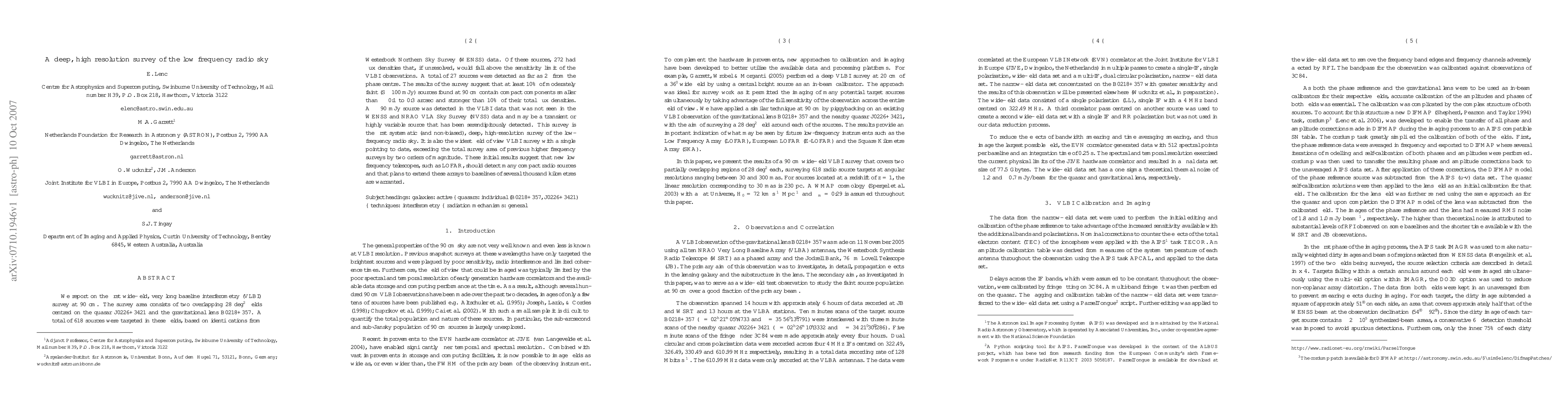 This paper presents the first wide-field, high-resolution VLBI survey at 90 cm, detecting 27 sources in two overlapping fields. It reveals that at least 10% of moderately faint radio sources contain compact components, suggesting new low-frequency telescopes will detect many such sources.