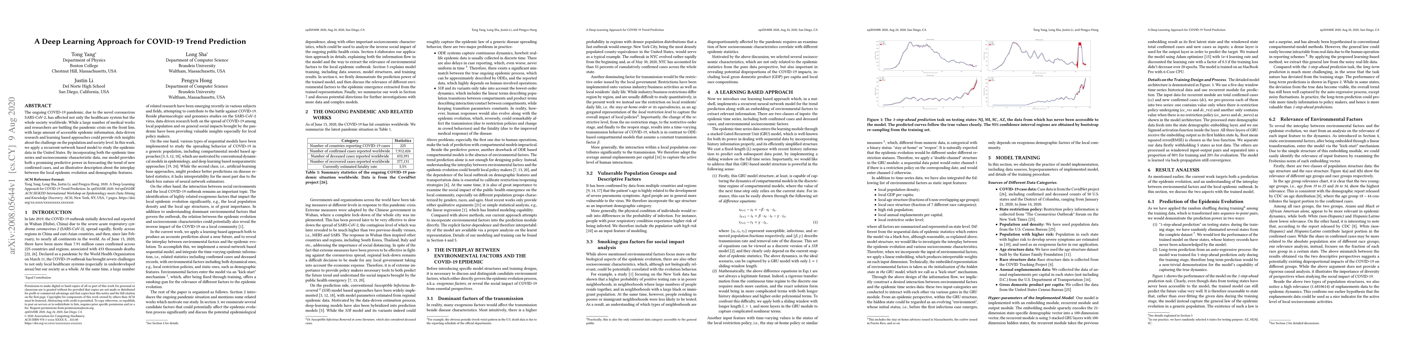 This paper presents a deep learning model to predict COVID-19 trends in the U.S., utilizing demographic data and time-series epidemic information via a Gated Recurrent Unit. The model shows promising results and identifies key demographic factors influencing the spread.
