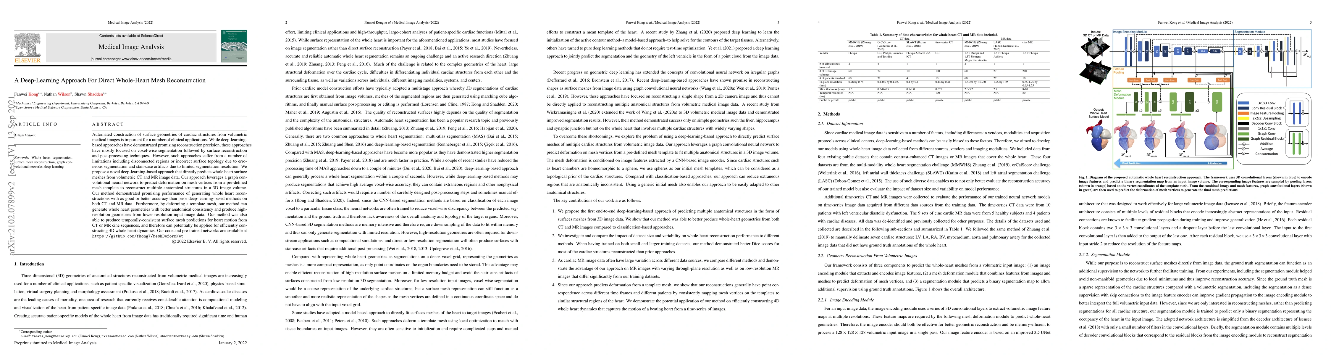 This paper proposes a novel deep-learning method using a graph convolutional neural network to directly reconstruct whole heart surface meshes from volumetric CT and MR images, achieving better anatomical consistency and higher resolution than previous voxel-based methods. The approach deforms a template mesh to generate accurate 3D heart geometries and temporally consistent heart motion predictions.