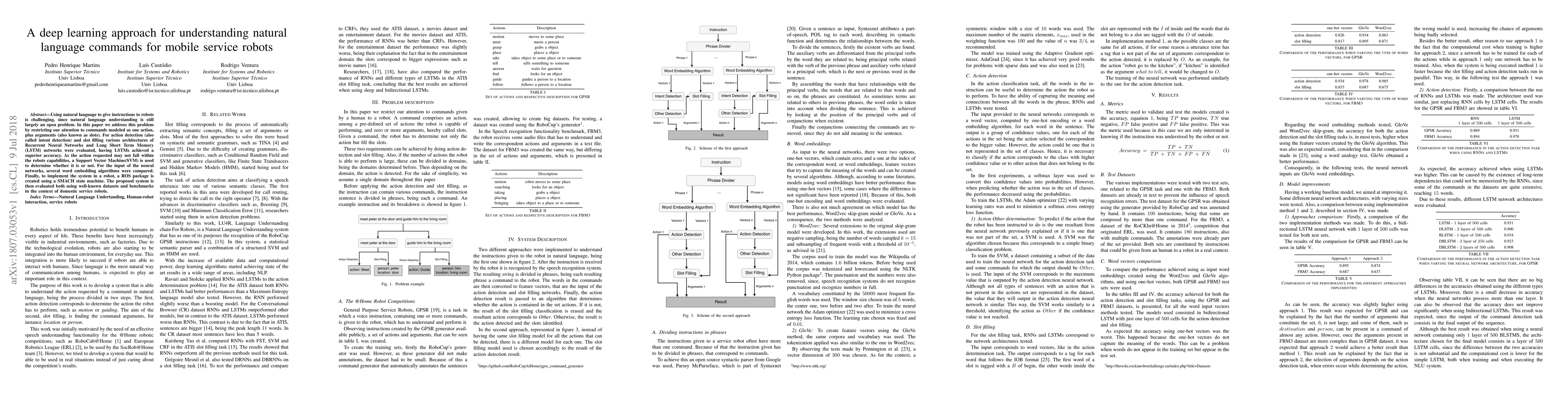 The paper presents a deep learning-based natural language understanding system for service robots, using LSTMs for action detection and slot filling, and comparing various word embedding methods.