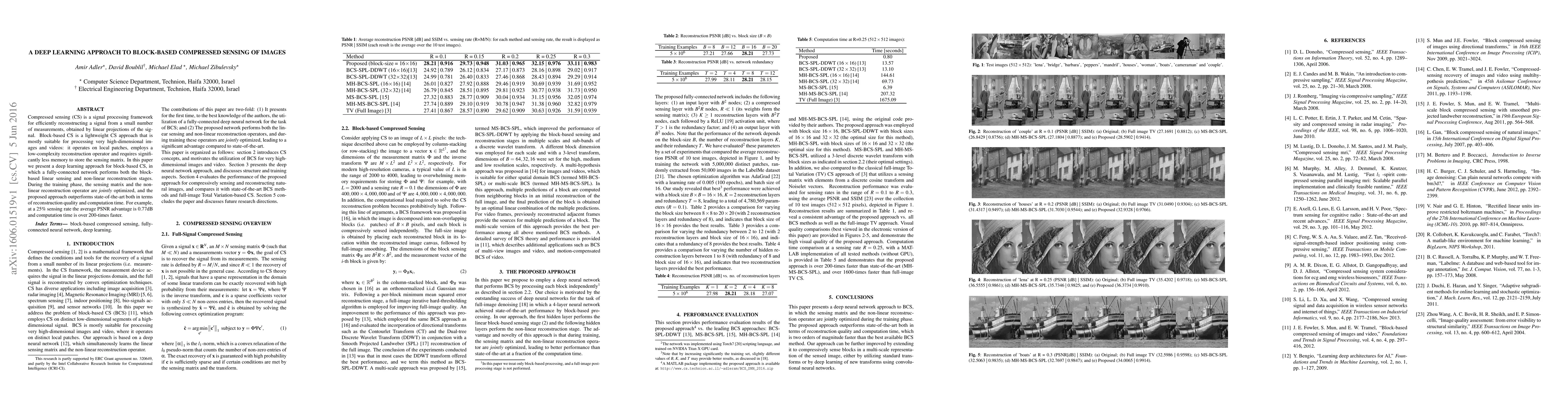 This paper introduces a deep learning method for block-based compressed sensing of images, utilizing a fully-connected network for both sensing and reconstruction. The approach jointly optimizes the sensing matrix and reconstruction operator, achieving superior reconstruction quality and significantly faster computation compared to state-of-the-art methods.