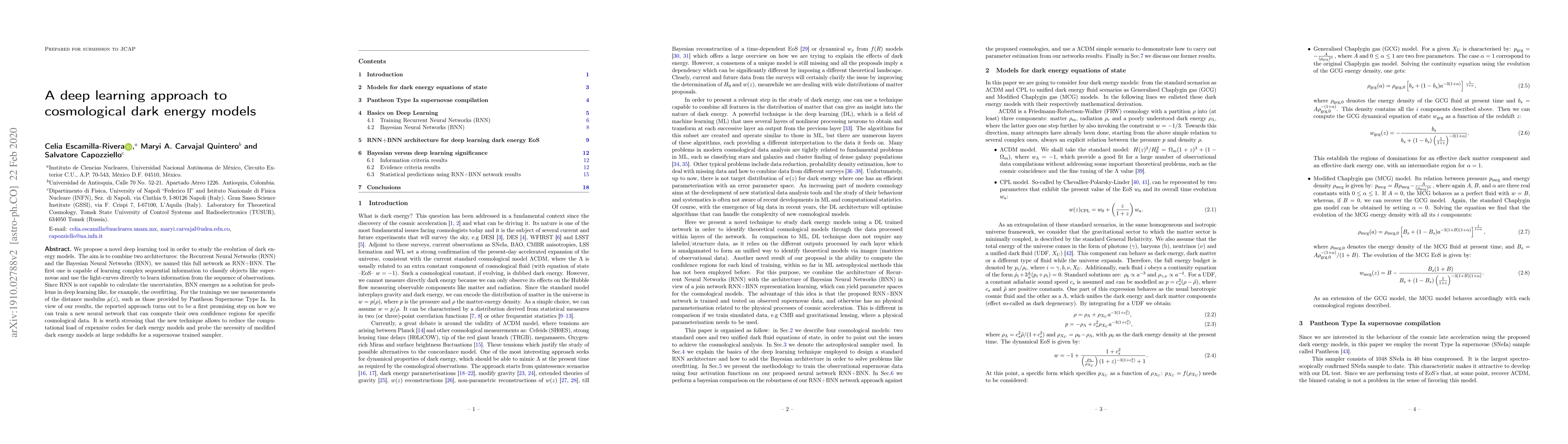 This paper introduces a deep learning model combining RNN and BNN to study dark energy evolution, using supernovae light-curves to classify observations. The hybrid RNN+BNN network reduces computational costs and provides confidence regions for cosmological data, indicating a promising new approach for dark energy modeling.