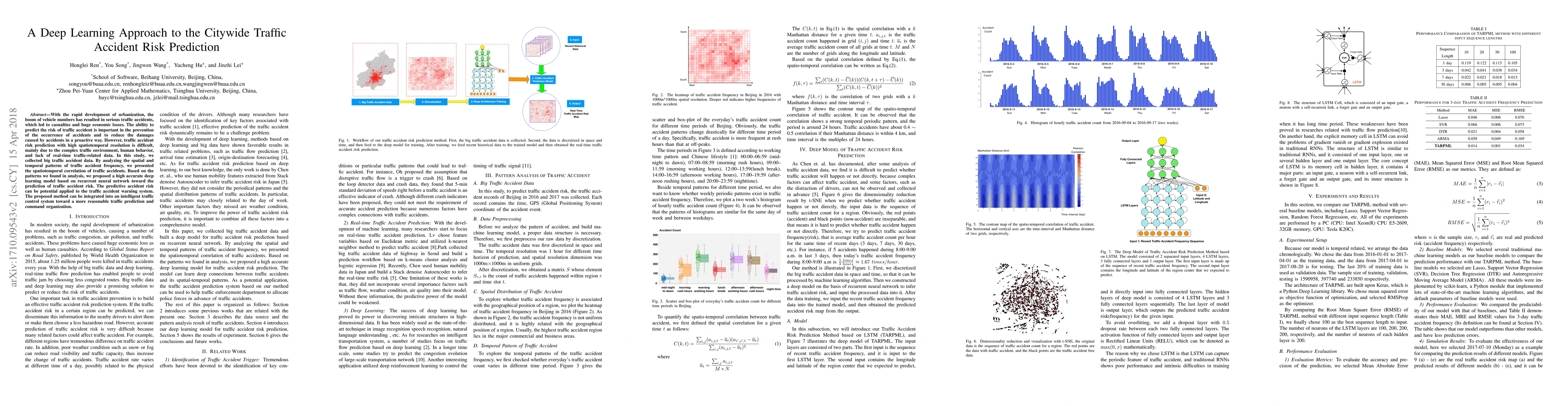 This study proposes a deep learning model based on recurrent neural networks to predict citywide traffic accident risks by analyzing spatiotemporal patterns in traffic accident data, aiming to enhance proactive traffic safety and control systems. The model seeks to improve accident prediction accuracy to support traffic warning and management.