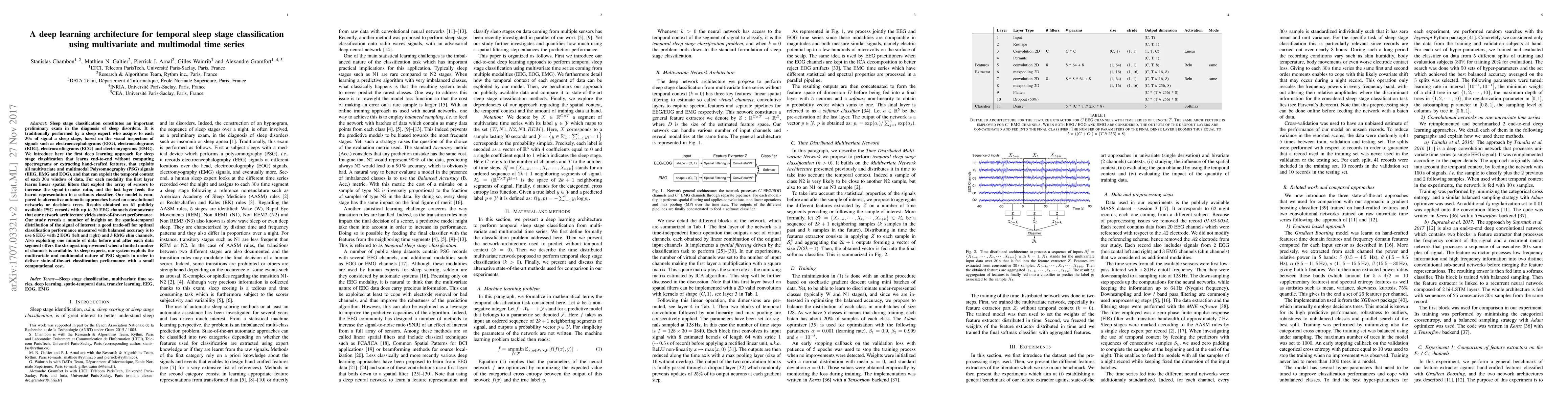 This research introduces a deep learning model for classifying sleep stages using multivariate and multimodal time series from Polysomnography signals. The proposed end-to-end deep learning architecture achieves state-of-the-art performance in sleep stage classification without relying on spectrograms or hand-crafted features, demonstrating optimal accuracy with a combination of 6 EEG, 2 EOG, and 3 EMG channels.