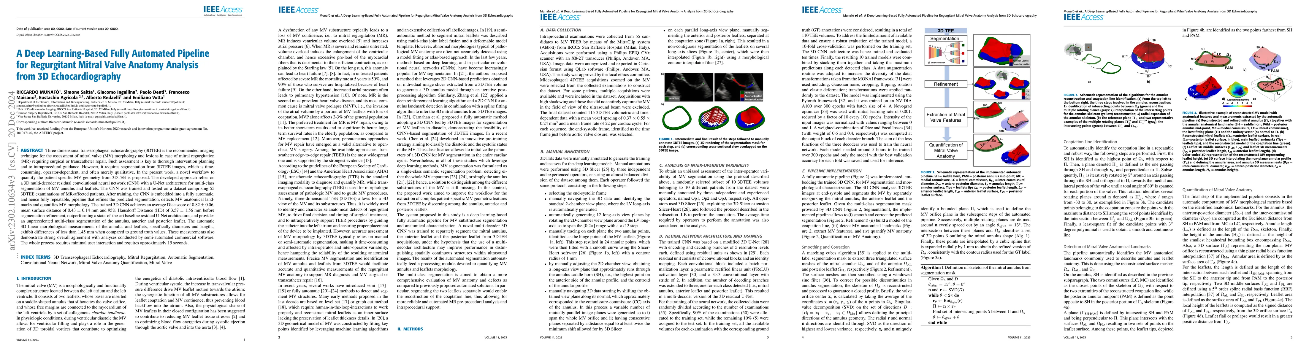This paper presents a fully automated deep learning pipeline using a 3D CNN to segment and quantify mitral valve anatomy from 3DTEE images, significantly reducing the time and variability compared to manual methods. The proposed multi-decoder residual U-Net architecture achieved high accuracy and outperformed baseline models.