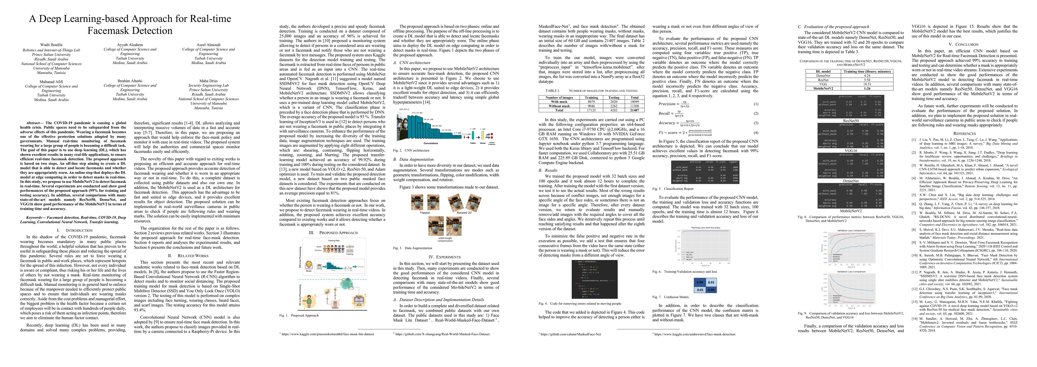 This paper proposes a deep learning-based approach using MobileNetV2 for real-time facemask detection to safeguard public spaces during the COVID-19 pandemic. The model achieves 99% accuracy in training and testing, outperforming other models like ResNet50, DenseNet, and VGG16 in terms of speed and efficiency.