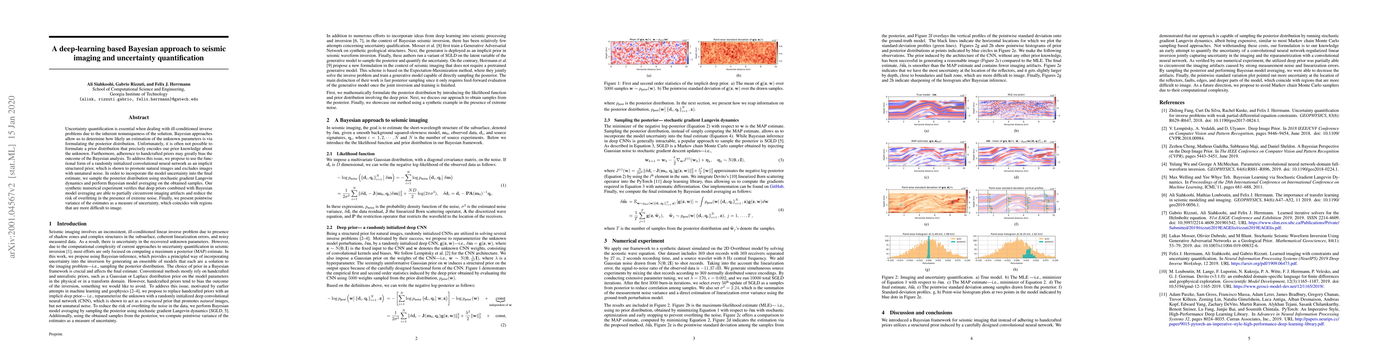 This paper proposes a deep-learning based Bayesian approach for seismic imaging, using a convolutional neural network as an implicit prior to mitigate bias and improve uncertainty quantification. The method employs Bayesian model averaging and stochastic gradient Langevin dynamics to reduce artifacts and overfitting, with variance of estimates indicating uncertainty.