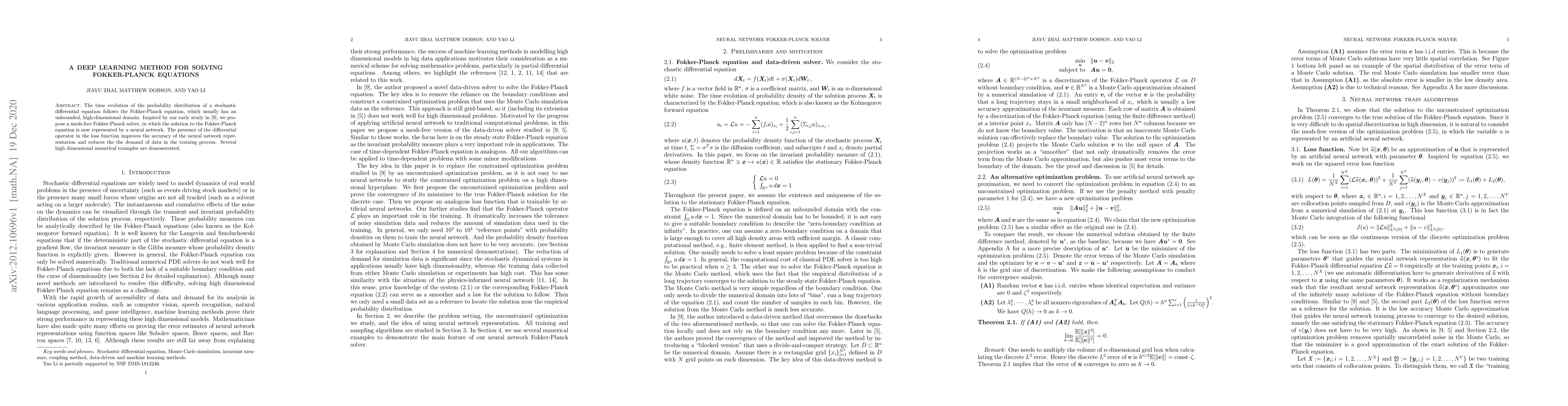 This paper proposes a deep learning method using neural networks to solve Fokker-Planck equations, which describe the time evolution of probability distributions in stochastic differential equations. The method incorporates the differential operator in the loss function to enhance accuracy and reduce training data requirements.