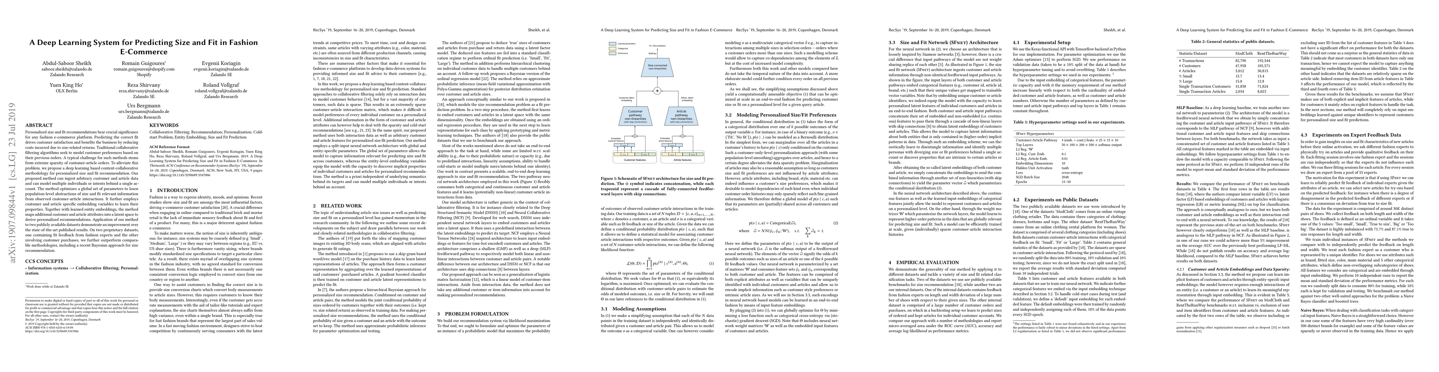 A deep learning method improves personalized size and fit recommendations for fashion e-commerce, outperforming state-of-the-art methods on public and proprietary datasets.