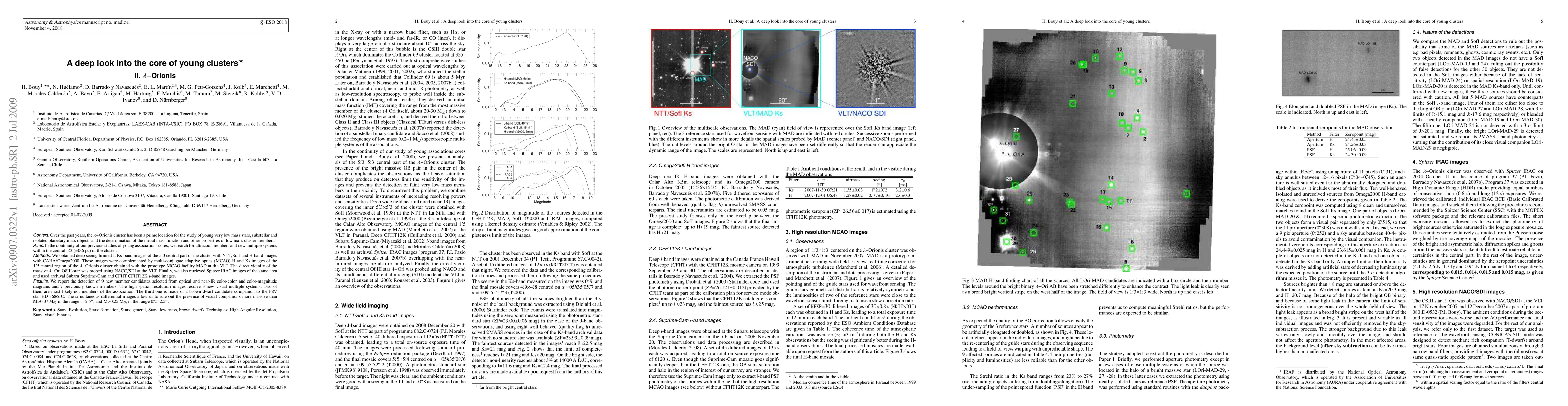Over the past years, the lambda-Orionis cluster has been a prime location for the study of young very low mass stars, substellar and isolated planetary mass objects and the determination of the initial mass function and other properties of low mass cluster members. In the continuity of our previous studies of young associations cores, we search for ultracool members and new multiple systems within the central 5.3' (~0.6pc) of the cluster. We obtained deep seeing limited J, Ks-band images of the 5.3' central part of the cluster with NTT/SofI and H-band images with CAHA/Omega2000. These images were complemented by multi-conjugate adaptive optics (MCAO) H and Ks images of the 1.5' central region of the lambda-Orionis cluster obtained with the prototype MCAO facility MAD at the VLT. The direct vicinity of the massive lambda-Ori O8III-star was probed using NACO/SDI at the VLT. Finally, we also retrieved Spitzer IRAC images of the same area and used archival Subaru Suprime-Cam and CFHT CFHT12K i-band images. We report the detection of 9 new member candidates selected from optical and near-IR color-color and color-magnitude diagrams and 7 previously known members. The high spatial resolution images resolve 3 new visual multiple systems. Two of them are most likely not members of the association. The third one is made of a brown dwarf candidate companion to the F8V star HD36861C. The simultaneous differential images allow us to rule out the presence of visual companions more massive than M>0.07Msun in the range 1-2.5", and M>0.25Msun in the range 0.5-2.5"