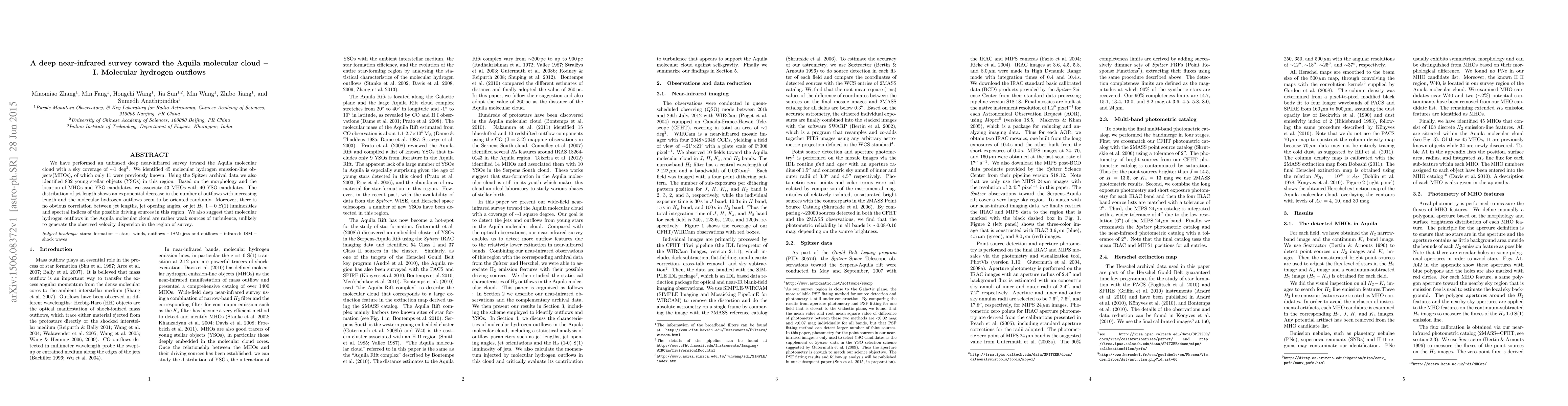 This study presents a deep near-infrared survey of the Aquila molecular cloud, identifying 45 molecular hydrogen emission-line objects and associating most with young stellar objects. The survey suggests weak molecular hydrogen outflows, which do not significantly contribute to the turbulence observed in the region.