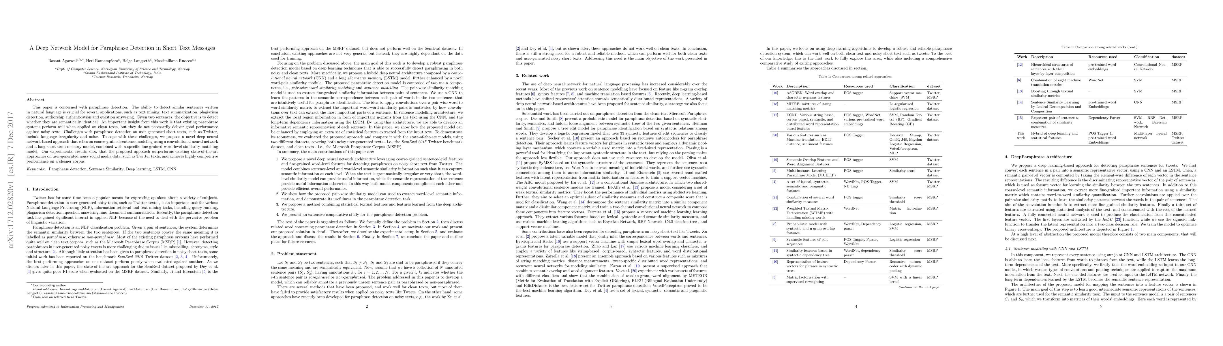 This paper proposes a deep neural network model for detecting paraphrases in noisy short texts, like Twitter messages, outperforming existing methods on social media data. The approach combines coarse-grained sentence modeling with fine-grained word-level similarity matching.