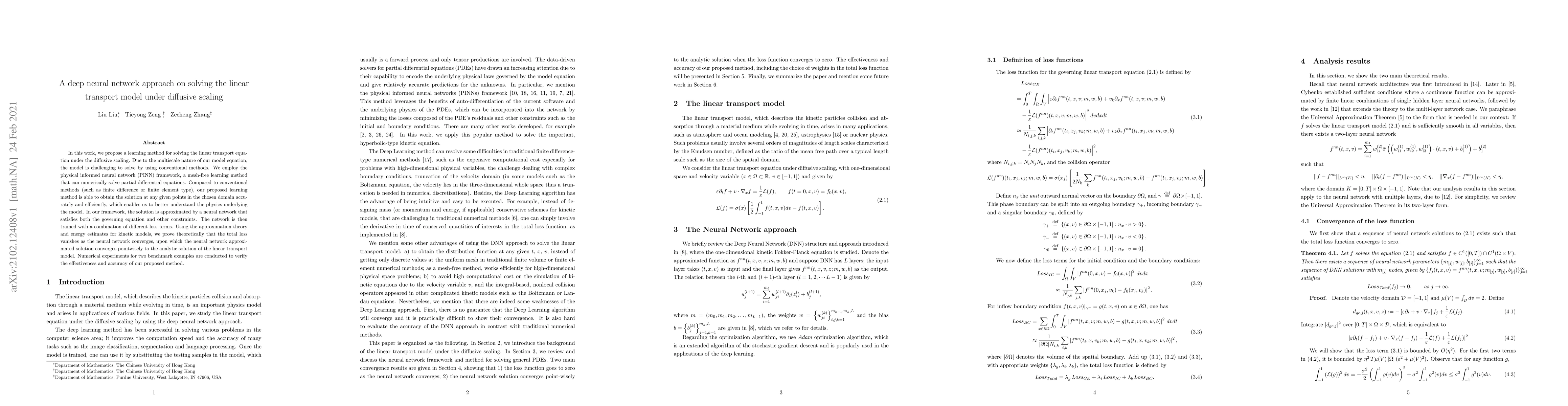A deep neural network approach is proposed to solve the linear transport equation under diffusive scaling, offering accurate and efficient solutions with better understanding of physics.