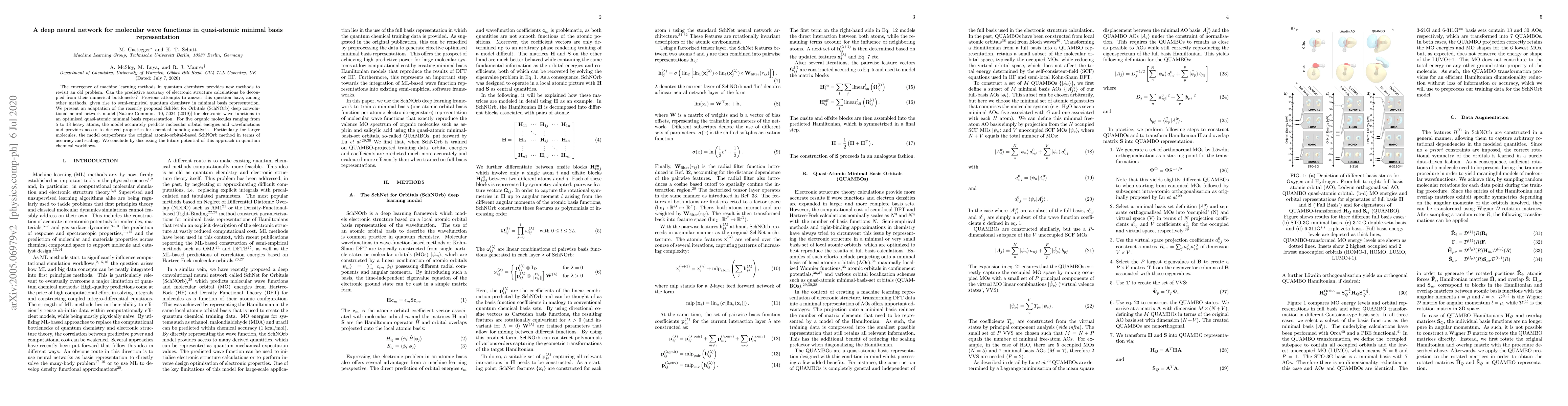 The emergence of machine learning methods in quantum chemistry provides new methods to revisit an old problem: Can the predictive accuracy of electronic structure calculations be decoupled from their numerical bottlenecks? Previous attempts to answer this question have, among other methods, given rise to semi-empirical quantum chemistry in minimal basis representation. We present an adaptation of the recently proposed SchNet for Orbitals (SchNOrb) deep convolutional neural network model [Nature Commun. 10, 5024 (2019)] for electronic wave functions in an optimised quasi-atomic minimal basis representation. For five organic molecules ranging from 5 to 13 heavy atoms, the model accurately predicts molecular orbital energies and wavefunctions and provides access to derived properties for chemical bonding analysis. Particularly for larger molecules, the model outperforms the original atomic-orbital-based SchNOrb method in terms of accuracy and scaling. We conclude by discussing the future potential of this approach in quantum chemical workflows.