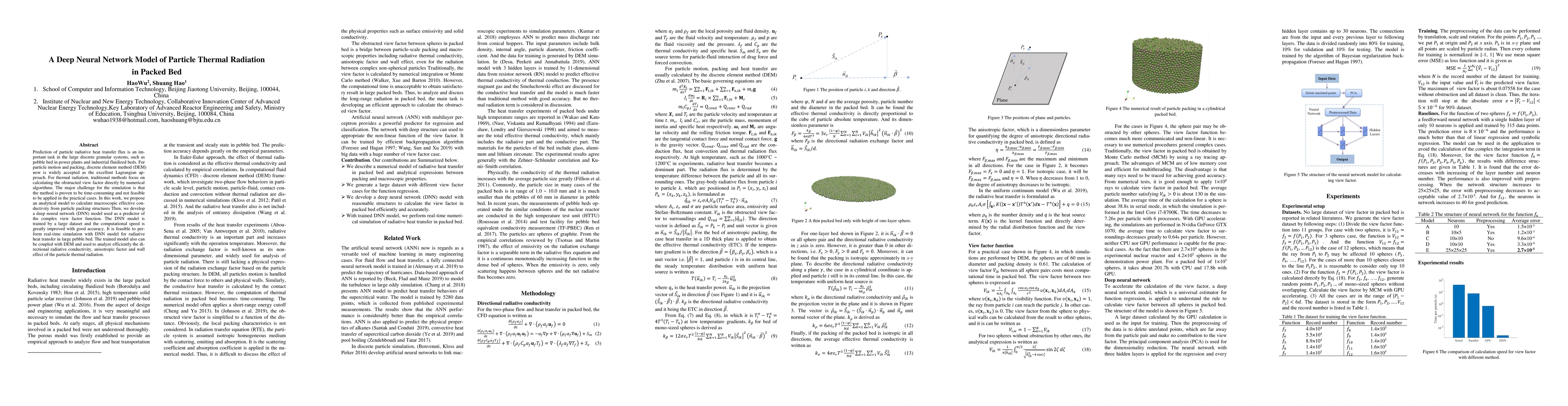 This paper proposes a deep neural network (DNN) model to predict particle radiative heat transfer flux in packed beds, significantly improving computational speed over traditional methods. The DNN model is trained on a large dataset and can efficiently analyze directional radiative conductivity and particle packing effects in real-time simulations.