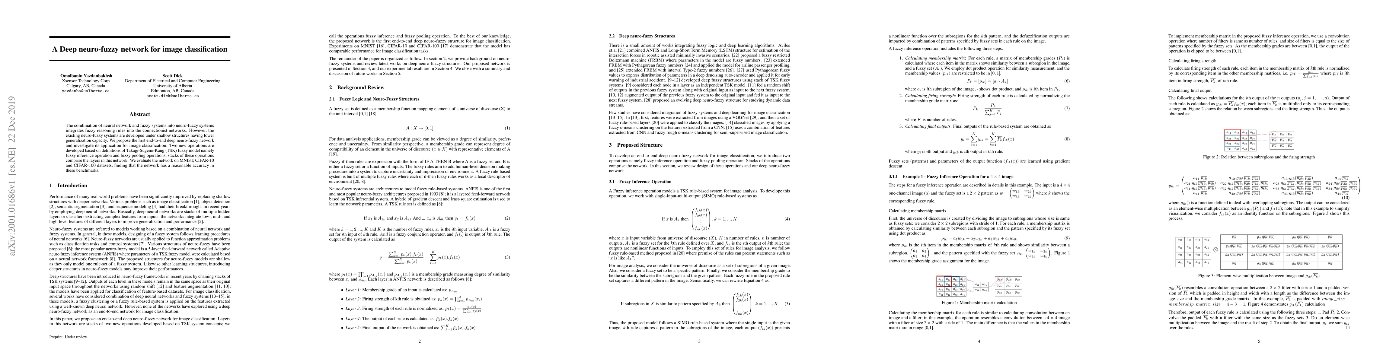 This paper proposes a novel deep neuro-fuzy network combining neural networks and fuzzy systems, introducing new fuzzy inference and pooling operations based on the TSK model. The network demonstrates reasonable accuracy in image classification tasks on MNIST, CIFAR-10, and CIFAR-100 datasets.