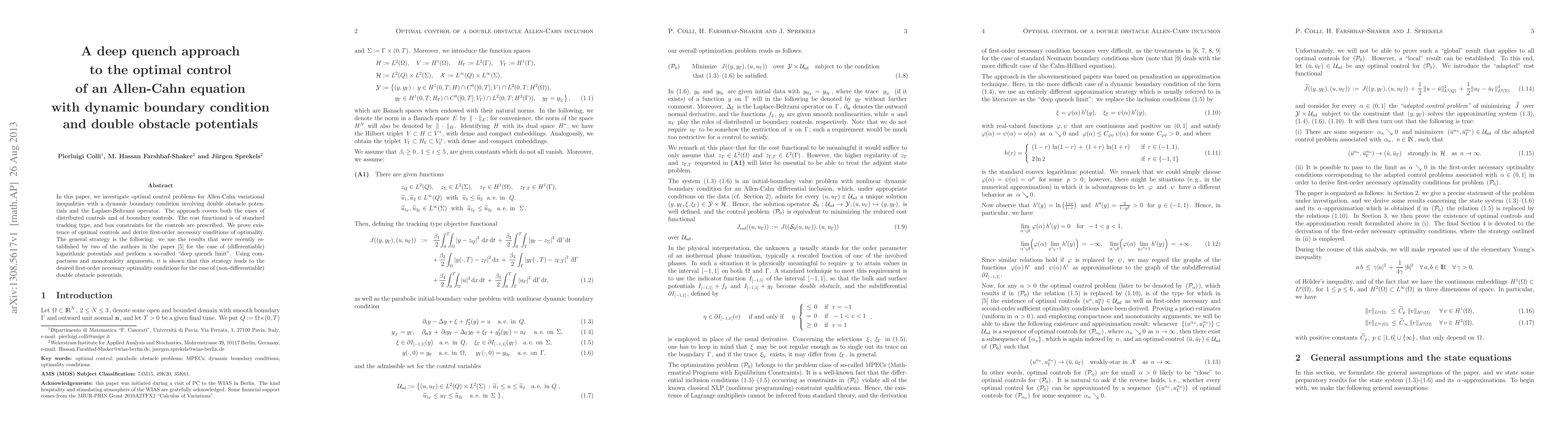 This paper explores optimal control of Allen-Cahn variational inequalities with dynamic boundary conditions and double obstacle potentials, proving the existence of optimal controls and deriving first-order necessary conditions. The approach employs a "deep quench limit" strategy based on previously established results for logarithmic potentials.