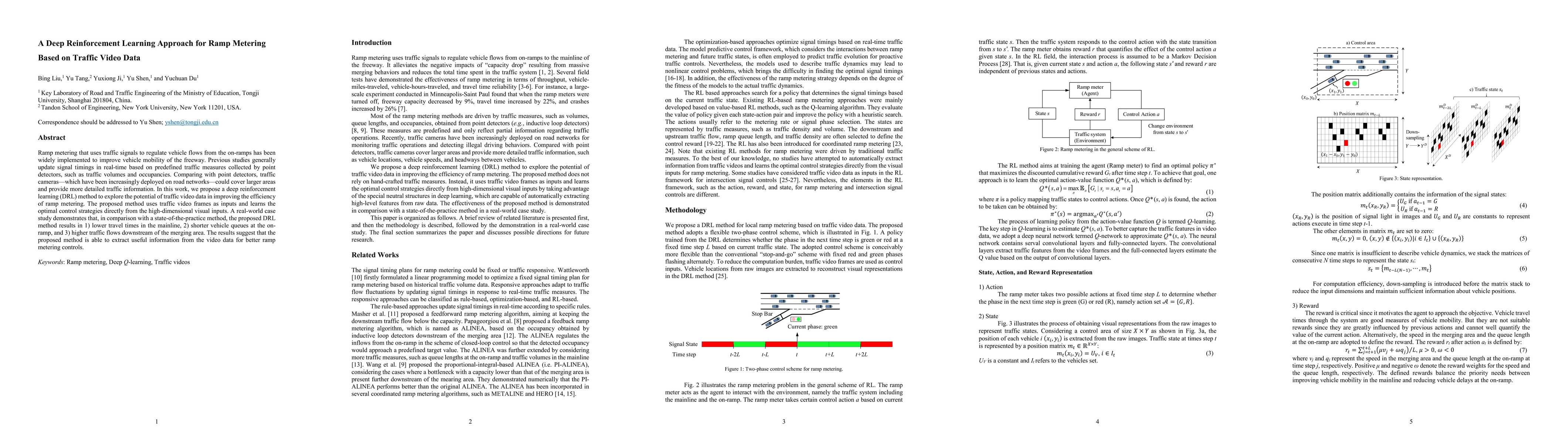 This paper proposes a deep reinforcement learning approach to enhance ramp metering using traffic video data, demonstrating improved mainline travel times, reduced on-ramp queues, and higher downstream traffic flows compared to traditional methods. The method directly learns optimal control strategies from high-dimensional visual inputs.