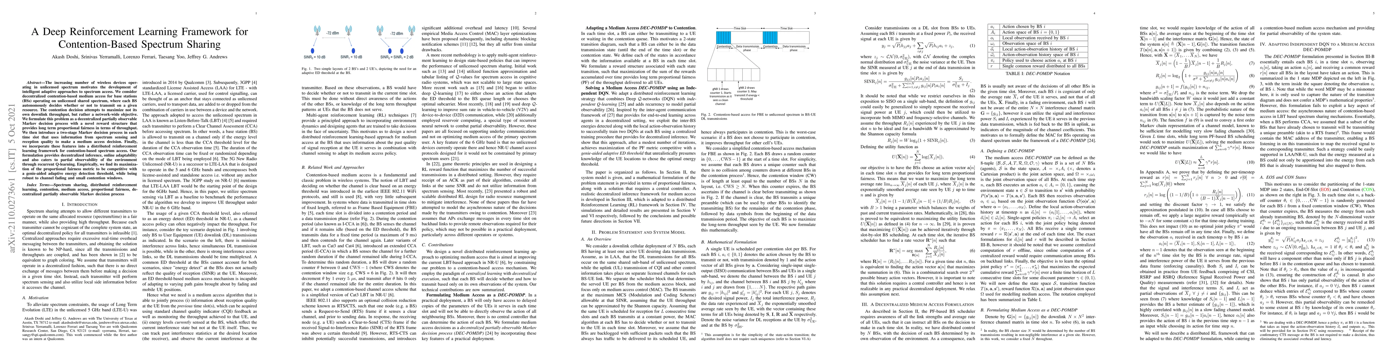 This paper proposes a deep reinforcement learning framework for decentralized contention-based spectrum sharing among base stations, aiming to maximize network-wide proportional fairness. The approach uses a two-stage Markov decision process and recurrent Q-learning to adapt to the environment and optimize spectrum access.