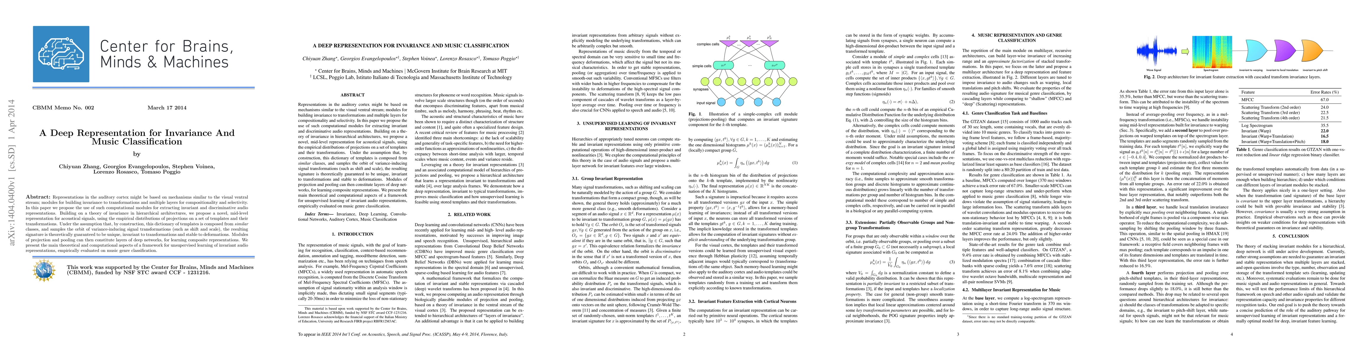 Researchers propose a new framework for learning invariant audio representations using mid-level templates and hierarchical architectures, aiming to improve music genre classification.