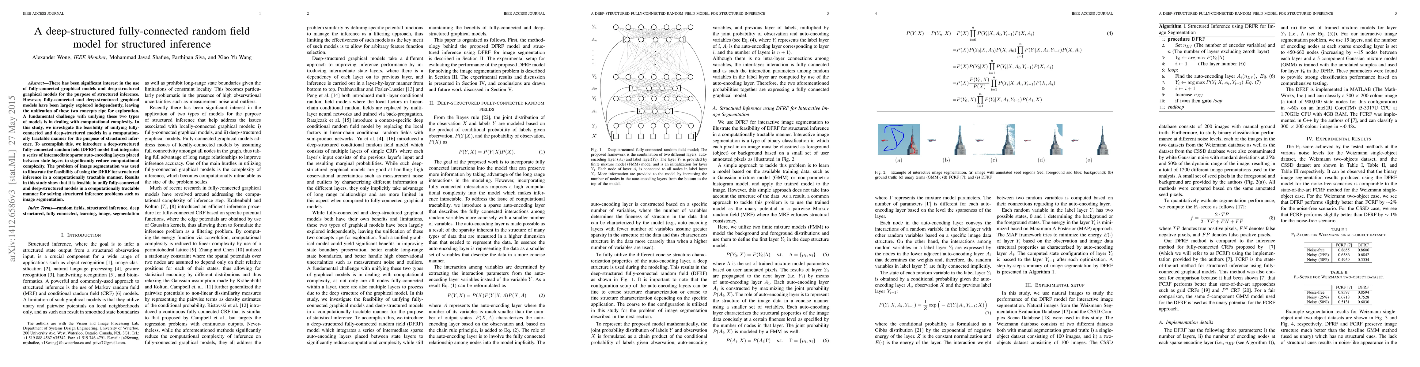 There has been significant interest in the use of fully-connected graphical models and deep-structured graphical models for the purpose of structured inference. However, fully-connected and deep-structured graphical models have been largely explored independently, leaving the unification of these two concepts ripe for exploration. A fundamental challenge with unifying these two types of models is in dealing with computational complexity. In this study, we investigate the feasibility of unifying fully-connected and deep-structured models in a computationally tractable manner for the purpose of structured inference. To accomplish this, we introduce a deep-structured fully-connected random field (DFRF) model that integrates a series of intermediate sparse auto-encoding layers placed between state layers to significantly reduce computational complexity. The problem of image segmentation was used to illustrate the feasibility of using the DFRF for structured inference in a computationally tractable manner. Results in this study show that it is feasible to unify fully-connected and deep-structured models in a computationally tractable manner for solving structured inference problems such as image segmentation.