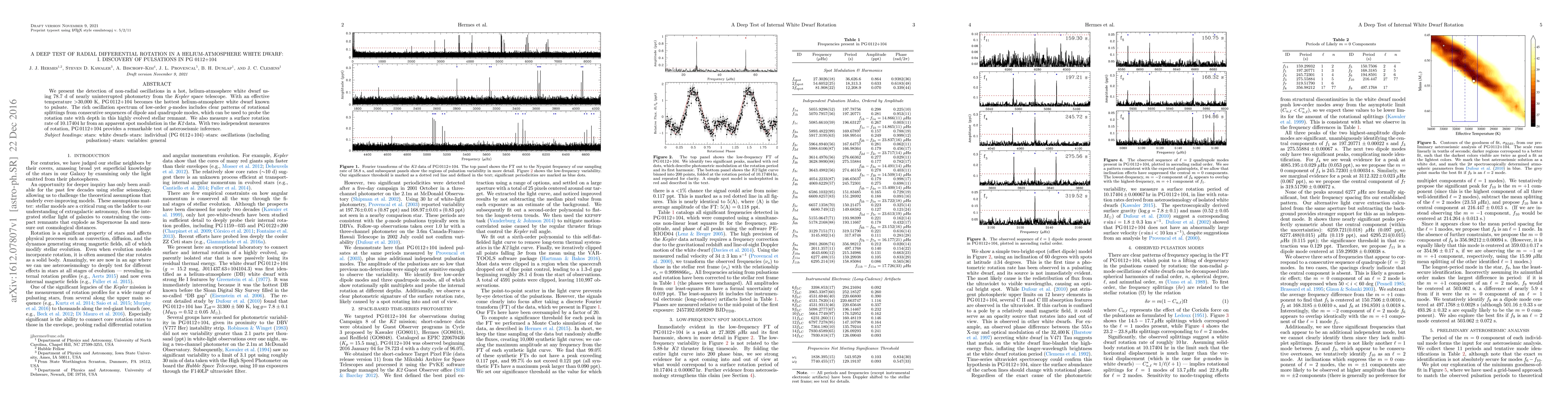 This paper reports the detection of non-radial pulsations in the hottest helium-atmosphere white dwarf, PG 0112+104, using Kepler space telescope data. The rich oscillation spectrum reveals rotational splittings, providing insights into differential rotation and a surface rotation rate of 10.17404 hr.