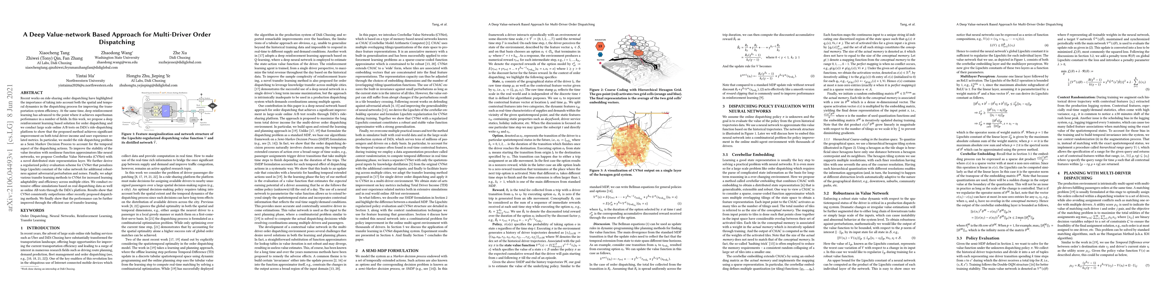 This paper proposes a deep reinforcement learning approach using Cerebellar Value Networks (CVNet) for optimizing ride-sharing dispatch, demonstrating significant improvements in driver income and user experience through extensive online A/B tests on DiDi's platform. The method incorporates transfer learning to enhance adaptability and efficiency across different cities.